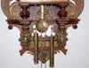 Lenzkirch Type Bronze Mounted Wall Clock full figured winged angels; ladies and lion head; masks and other ornate trim; multi-colored enameled dial; heavy oak case.