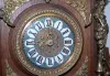 full figured winged angels; ladies and lion head; masks and other ornate trim; multi-colored enameled dial; heavy oak case.