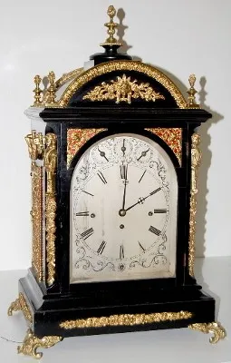 Ornate English Bracket Clock W/ Bronze Decor. 8 Bells and Wire Gong.