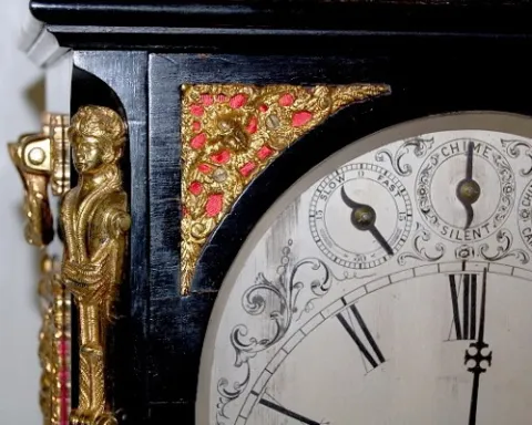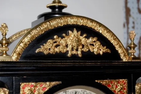 Ornate English Bracket Clock W/ Bronze Decor.