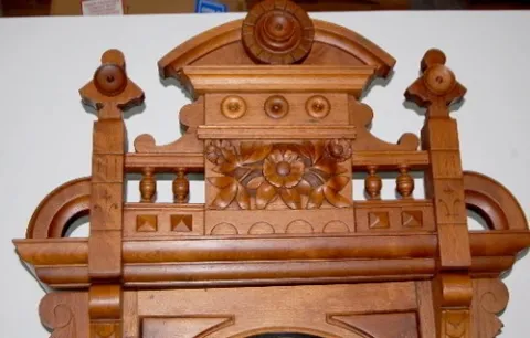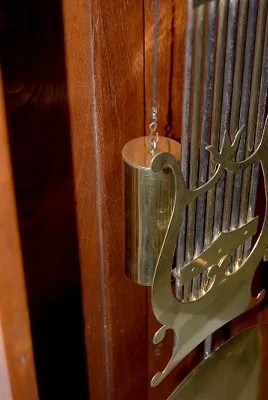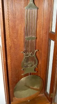 brass trim, weight and Lyre pendulum; floral carved walnut case; porcelain dial; sweep second hand. (Minor roughness to case.) 90"