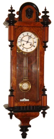 case is in beautiful polished condition with no obvious losses or damage. Burl veneer has bold grain patterns throughout. Porcelain dial has some fain...