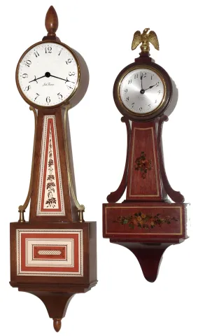 Clocks- 2 (Two) Seth Thomas small 8 day time only mahogany banjo clocks, 20th century