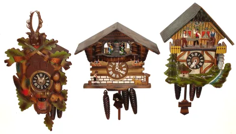 Clocks- 3 (Three) German Black Forest modern 3-weight cuckoo clocks, late 20th century