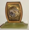 Yard Swiss double side 8 day 15 jewel brass, glass and marble desk clock, c1925 sadly, one side of this heavy and high quality clock is missing its dial and hands, but the other side makes a fine presentation with its applied numbers, beveled glass, flattened oval form, and green marble base. The brass needs polishing, and the nice Concord Watch Co. movement ticks and sets but needs cleaning. Ht 5"
