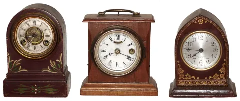 Clocks- 3 (Three) small American desk clocks, Terry mini iron alarm, H.Davies and Seth Thomas, late 19th and early 20th centuries