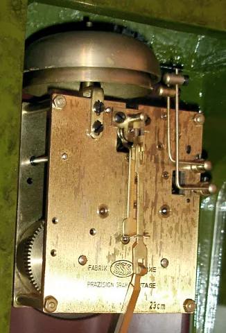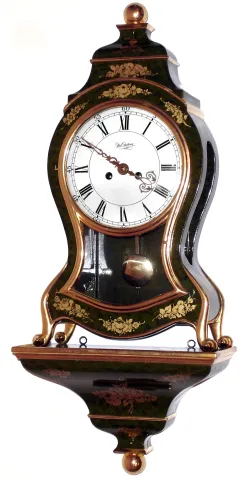 this case and bracket are in near perfect condition with glossy green mottled paint and bright gold moldings, decorations and castings. Fine dial and ...