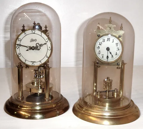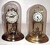Clocks- 2 (Two) German 400 day disk pendulum brass clocks with glass domes, 20th century