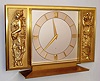 Swiss, for "Saks Fifth Avenue", ormolu desk clock in Art Nouveau motif, with a different lady emptying her water jug on each side of the dial. 8 day time and strike, c1950