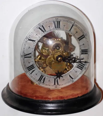 Eureka Clock Co., London, movement now associated with wood base and glass dome, c1906