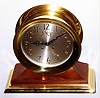 Chelsea Clock Co., Chelsea, Mass., "Limited Edition 2000 Millennium" ship's bell mantel clock with 8 day, spring driven, time and ship's bell strike movement in polished brass case on walnut base with brass platform engraved with the greatest names of the