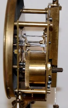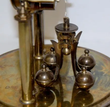 marked Germany silver metal dial; rotating 4 ball pendulum; brass works marked "S.G. Mattar, Hot Springs, Ark.; Made in Germany". (Not running; suspen...