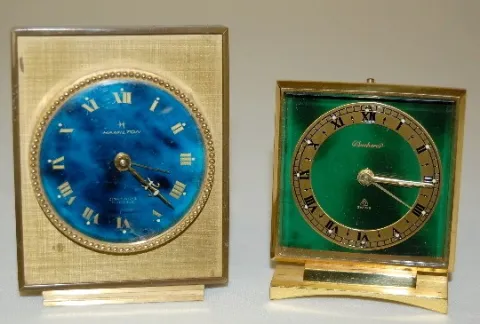 Hamilton and Bucherer Enamel Dial Alarm Clocks