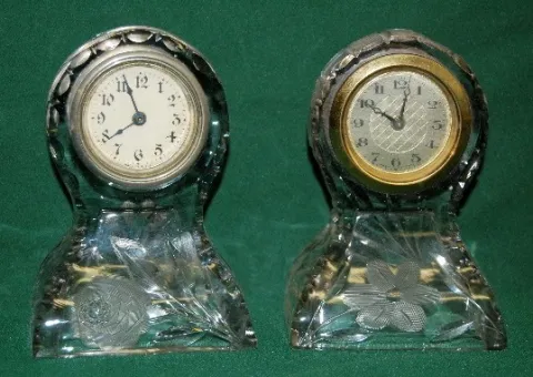 2 Pressed Glass Desk Clocks