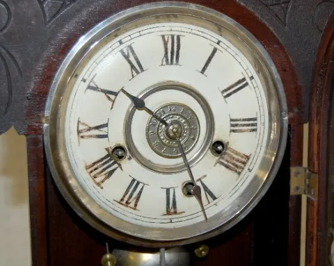 21 1/4" Tall case. The clock is running at this time. (The hammer does not strike properly.)...