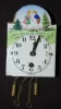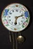 1.) Unmarked floral enamel porcelain dial; has pendulum. 2.) Marked Germany, kissing couple enamel porcelain dial; has pendulum. Neither have been tested. Largest 3 "