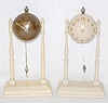 1.) Cream colored; not marked; raised gold numerals. 2.) Gold and cream colored; not marked; raised numbers. Neither tested. 9 3/4"