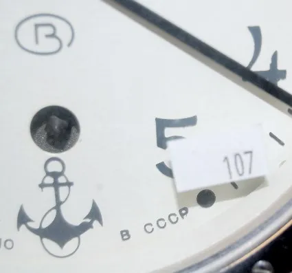 Kaungurackue Russian Ship's Clock with seconds hand. (Glass cracked.) 6" Dial