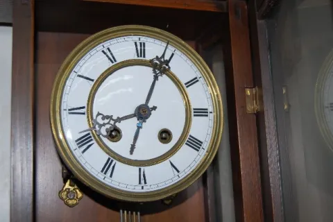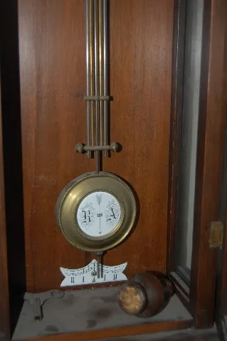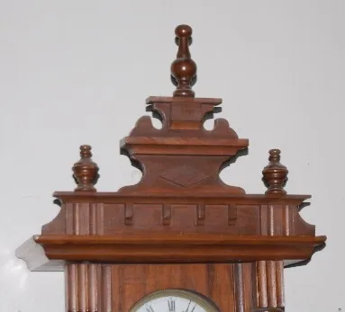 RA pendulum; porcelain dial; T & S. (Lower finial needs repegged and reattached.) Not tested. 39"...