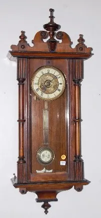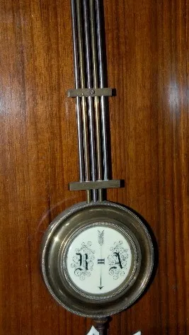 has RA pendulum with multiple rods; celluloid chapter ring with embossed metal center; T&S; in a partially ebonized mahogany case; Hamburg, Germany cr...