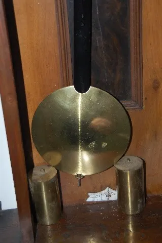 carved case; signed Remember on movement; dial signed Franz Maier; 2 weights and pendulum. (Missing top of clock; minor crack in dial; slight case wear..) Not tested. 37"