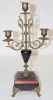 T & S, black metal dial with incised gold Roman numerals; brass movement marked A. Requier, Amiens, L. Marti & Cie Medaille de Bronze; matching pair of 3 candle candelabras. (No pendulum or key.) 15 1/2"