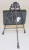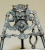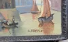 800 (Silver) Framed Mini J. Eberle Painting Clock miniature oil painting of a Venetian water scene with Venetian gondolas and sail boats with an old city in the background with a large clock tower. Easel legs are marked 800 (silver) and decorated with Mephistopheles head on the top and cloven feet on the bottom; has key. Not running. Easel 5 1/2" Tall.