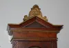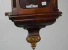 Lenzkirch RA Wall Clock with Gilt Trim works signed Lenzkirch 343600; porcelain dial; RA pendulum; with key; carved case with gilt top and bottom. (Dial has minor damage; top piece needs repaired; small door decoration needs reattached.) 36" Not tested.