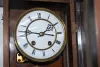 works signed Lenzkirch 343600; porcelain dial; RA pendulum; with key; carved case with gilt top and bottom. (Dial has minor damage; top piece needs repaired; small door decoration needs reattached.) 36" Not tested.