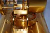 gold metal dial marked Le Coultre; center marked Le Coultre, Switzerland, Atmos, Fifteen 15 VXN Jewels; marked on top of works No. 59695; base also marked. (Very light wear to case finish.) Not tested. 9 1/4"