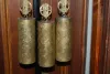 3 Weight Engraved Vienna Regulator Clock ornate carved walnut case with carved face mask ; heavily engraved brass dial, weights and pendulum. Not tested. 56"