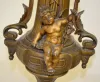 L & F Moreau Marble Garniture Set, Double Statue With a T&S movement numbered 6538; an unmarked porcelain dial; and the pendulum. The statue is signed "L & F Moreau" and depicts an young girl and boy carrying a basket. The side pieces are tall metal vases with Putti. (The clock is not running at this time.) (One of the metal side pieces is damaged at the top - the points are all broken off.) The clock is 26" Tall; the side pieces are 18" Tall