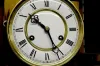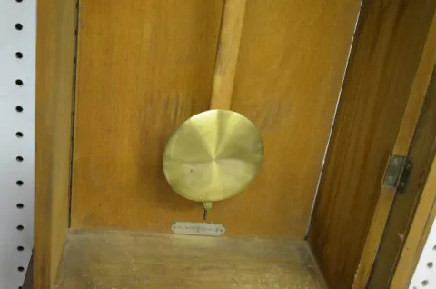 In a nicely patterned oak case with a T&S movement; an unmarked porcelain dial and the pendulum. Not tested. (The finish on the top of the clock is wo...