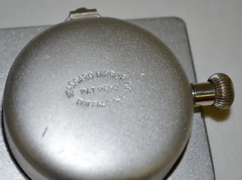 For a rear view mirror; with a silveroid dial and watch style winder at the 3. In the original box with instructions printed inside the plaid patterne...