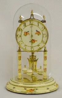 Kundo Anniversary Dome Clock With a painted floral motif and a marked painted dial. The works are marked "Kundo Kiennger & Obergfell Made in W. Germany". (The clock is not running at this time.) 12" Tall