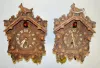 Each is marked. Each case is the same with a bird on the crest and a bird that bobs in and out of the case. There are 3 red birds and 1 white bird. There is a key and pendulum for each. Not tested. Tallest 8"