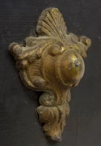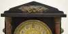 With a T&S movement; an unmarked dial; and the pendulum. The case has 2 faux red marbleized columns plus metal trim and decoration. Not tested. 12 3/4" Tall