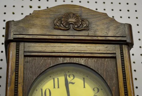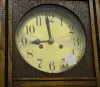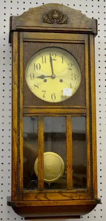 With a TO movement; a 3 bar chime; a brass colored metal dial; the pendulum and key. The clock is running and striking at this time. 30" Tall...