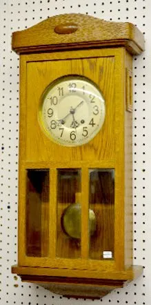 German Wall Hanging Oak Box Clock
