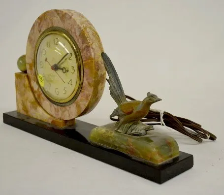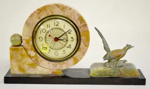 Marble Art Deco Electric Desk Clock w/ Pheasant