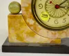 Marble Art Deco Electric Desk Clock w/ Pheasant With a black marble base; pink marble brace and clock surround; a green marble ball and a metal pheasant on a green marble block. The clock is running at this time. 7 1/2" Tall x 13" Wide