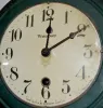This green painted clock has a TO movement; a marked Waterbury paper dial; the key and the pendulum. Not tested. 13" Long...