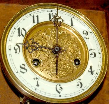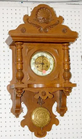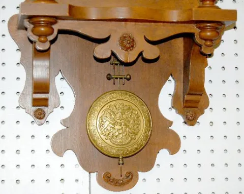 It has a porcelain chapter ring dial with ornate cherub center dial and matching pendulum; carved case with shell and scroll decorations. Not tested. ...