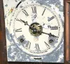 In a walnut case with an 8 day T&S spring driven movement. There is a metal Seem's calendar dial that is signed "Seem's Dial Patented Jan. 7, 1863". T...