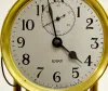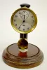 1.) Poole, with a marked silvered metal dial with seconds bit and the pendulum. It has the correct base with a "Poole" label. (There is no battery with the clock.) 2.) Barr, with a silvered metal dial marked "Barr Mfg. Co." and with seconds bit and the pendulum. It has the correct base with the "Barr" label and a level. Not tested. (The dome may not be original to the clock - it seems to be a tight fit. There is no battery with the clock.) (Both clocks have some wear to their bases.) Tallest - 10 1/2"