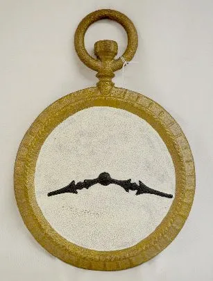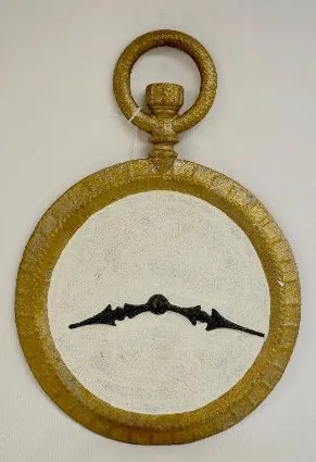 This pocket watch shaped sign is painted and ready to be used for advertising. 16 3/4" Tall...