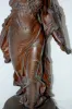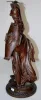 The sandal wearing female warrior has a spear in one hand, an owl with spread wings on her helmet and the head of Medusa on her shield and her breast plate. The warrior is made of heavily cast white metal. (The fold of her gown behind her left foot has been broken off and re-attached. The weld line is visible but does not detract from the overall look.) 20 1/2" Tall