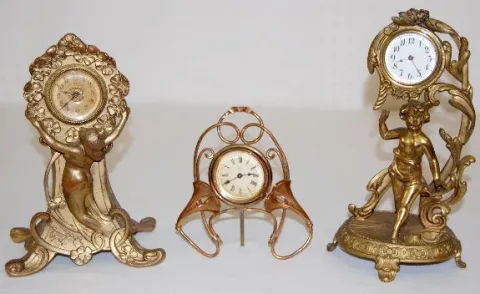 3 Novelty Clocks; Ansonia, New Haven +