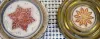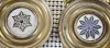 They are bull's eye style pendulums and include: one with a 6-point green and white star; one green and white flower; one 6-point pink star on white and one pink and white flower. All are in as found used condition. Longest 8 1/2"