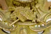 French Vincenti Bronze Figural Clock, Girl Statue With a T&S movement marked "Vincenti" and "Duplan & Salles par a Paris 070" and a paper and plastic dial marked "Japy Freres". In a bronze filigreed case with a gilt girl statue. The pendulum is with the clock. (The clock is not running at this time but it does chime.) (There is no key with the clock.) 15" Tall